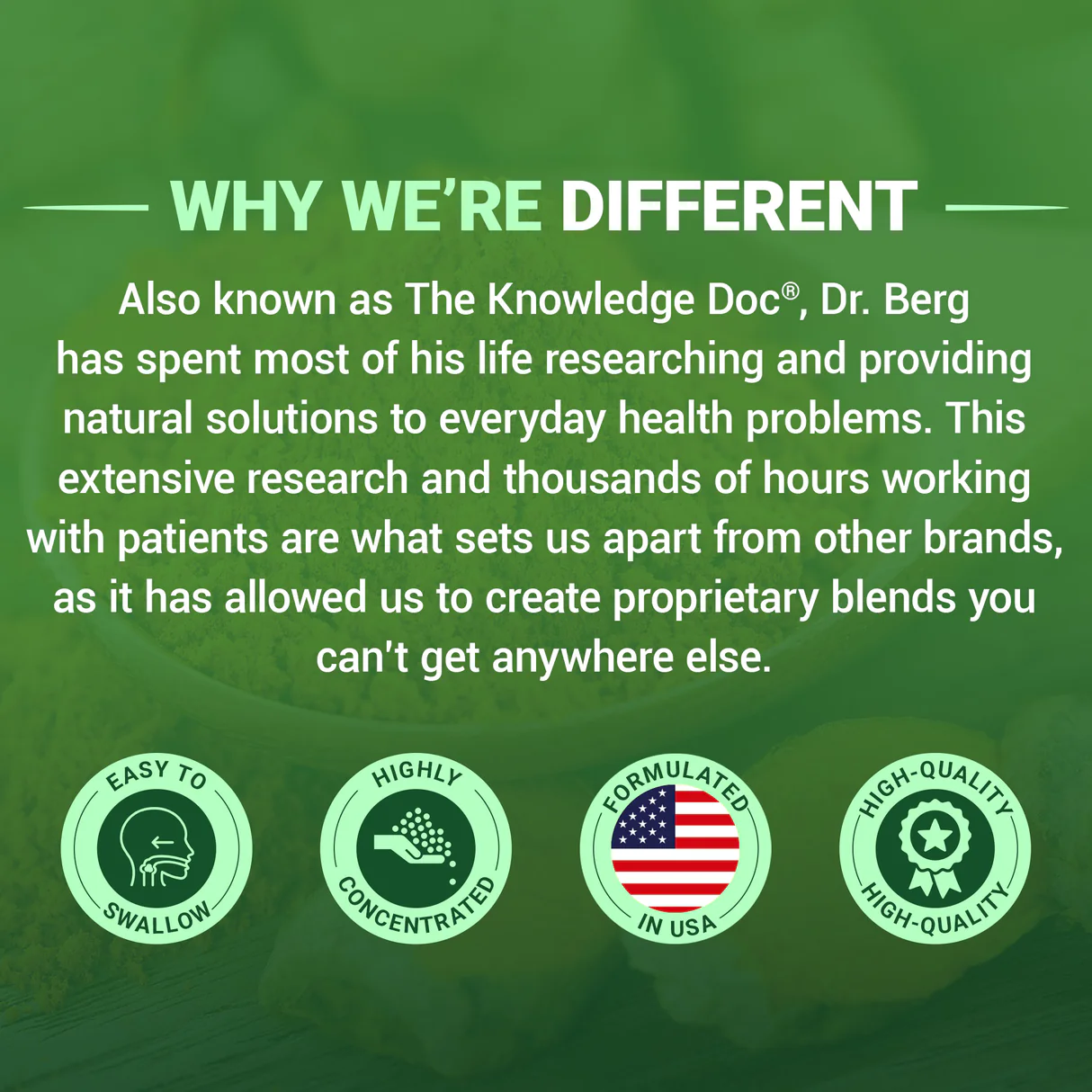 Dr. Berg—also known as The Knowledge Doc —has spent most of his life researching and providing natural solutions to everyday health problems. This extensive research and thousands of hours working with patients are what sets us apart from other brands and have allowed us to develop proprietary blends you can't get anywhere else.