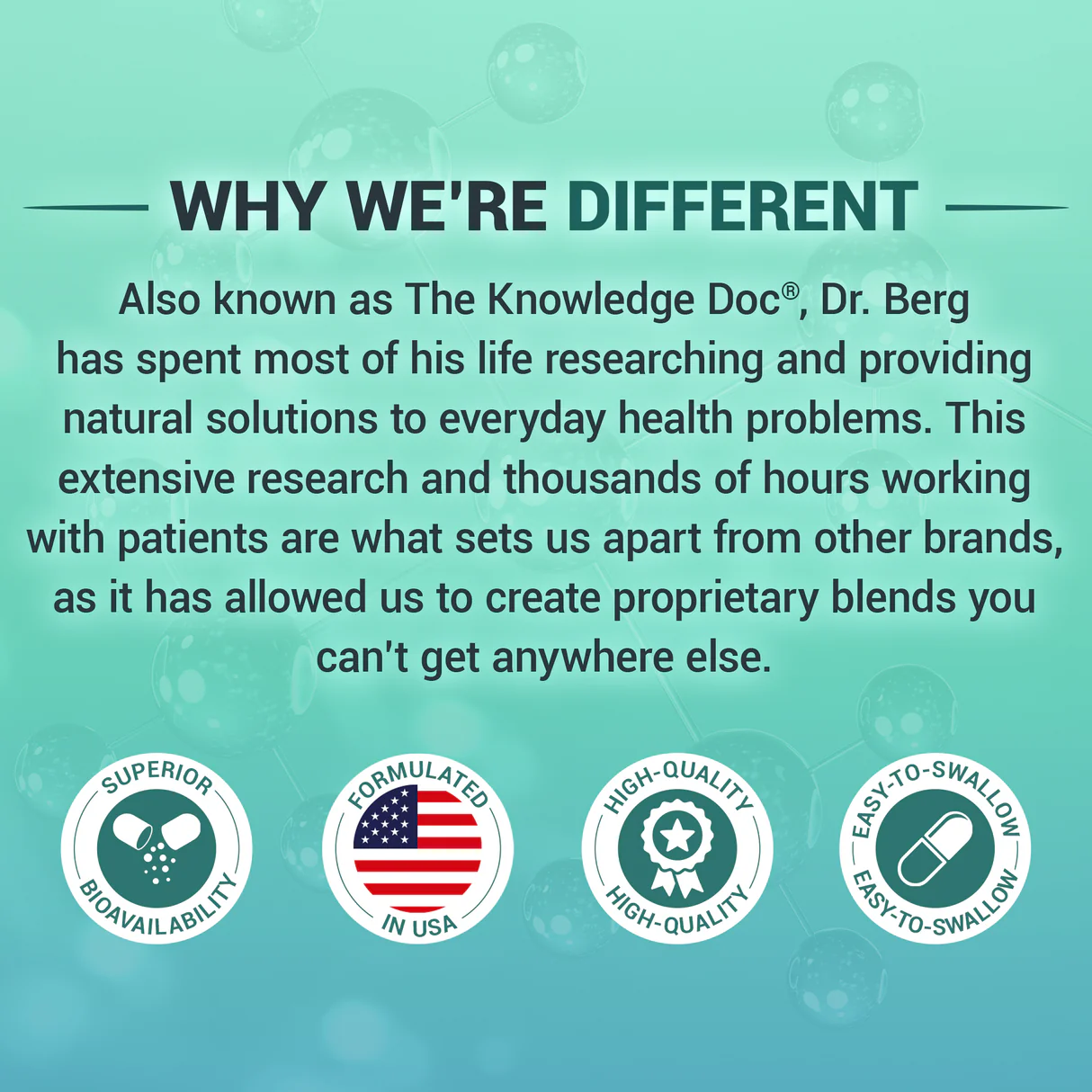 Dr. Berg - also known as The Knowledge Doc - has spent most of his life researching and providing natural solutions to everyday health problems. This extensive research and thousands of hours of patient work sets us apart from other brands and allows us to develop proprietary blends you can't get anywhere else.