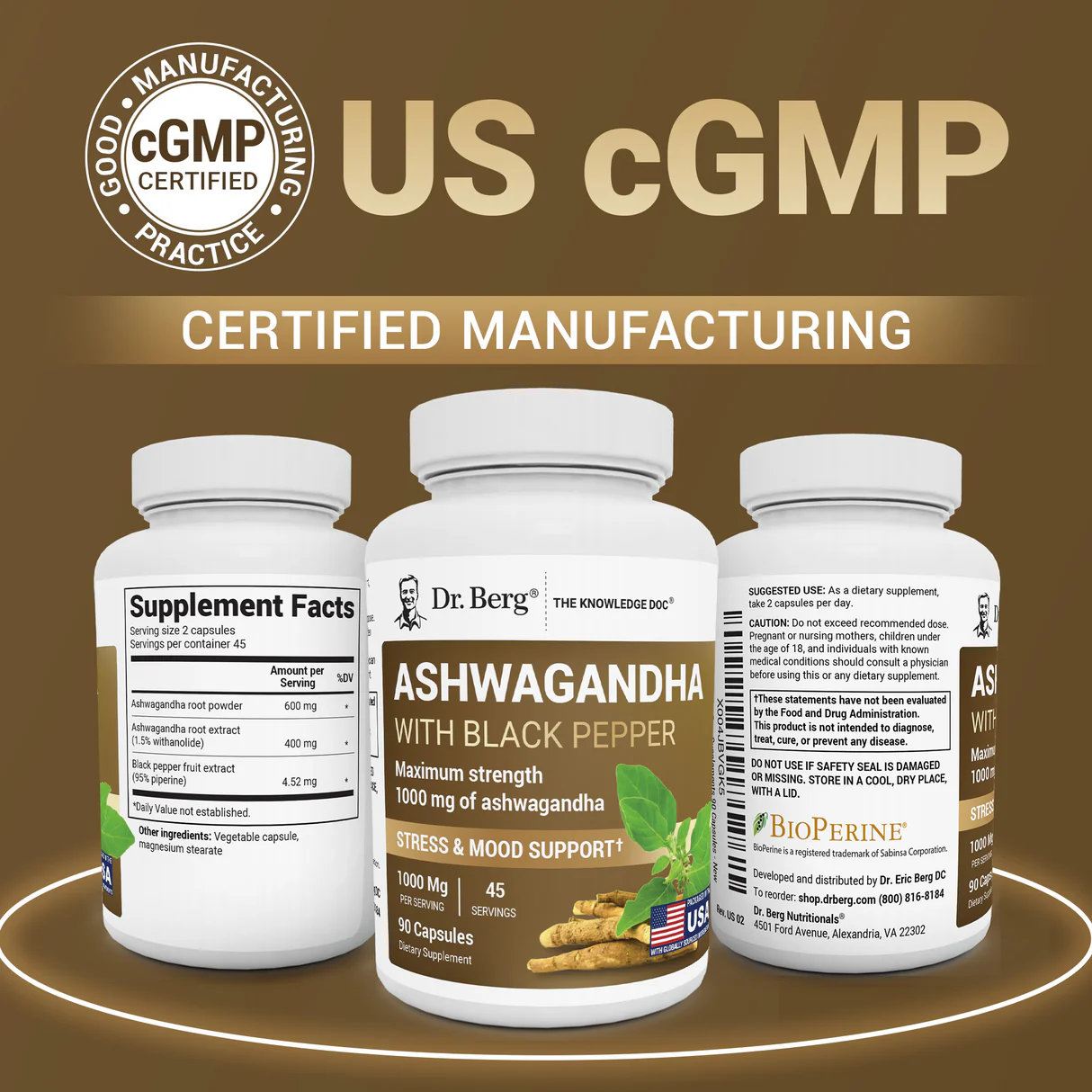 Dr. Berg top-tier Ashwagandha formula is made with organic ashwagandha root powder and high-quality black pepper extract for superior bioavailability. It's 100% vegan-friendly and contains zero harmful fillers, preservatives, additives, or other chemicals. We think you' ll be satisfied with the results of our high-quality Ashwagandha