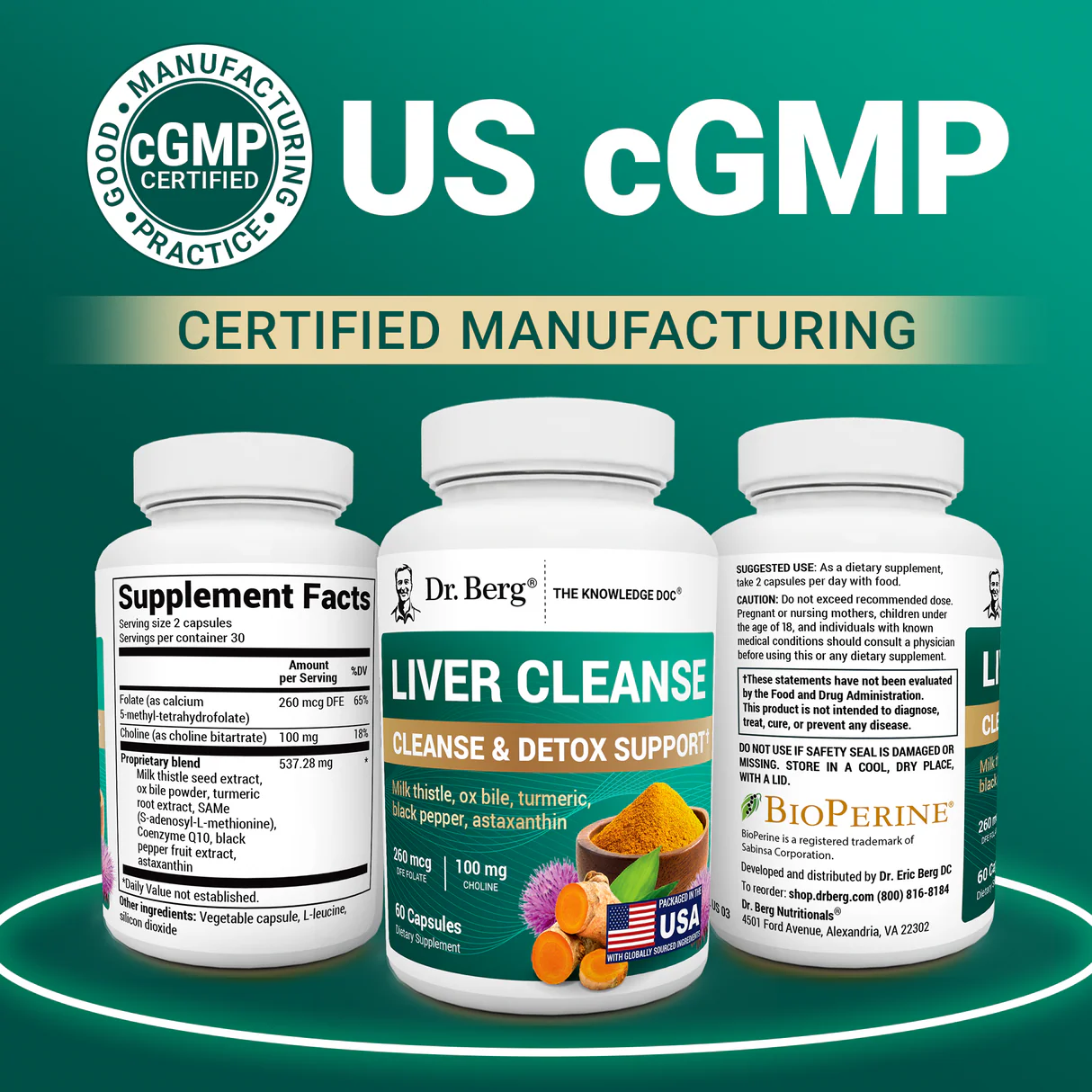 Dr. Berg Liver Cleanse is an incredible source of premium-quality folate, coenzymes, herbal extracts, and purified bile salts sourced from industry-leading suppliers worldwide! Our decades of experience, unique formulas, and high manufacturing standards ensure you get only the best quality products—every time.